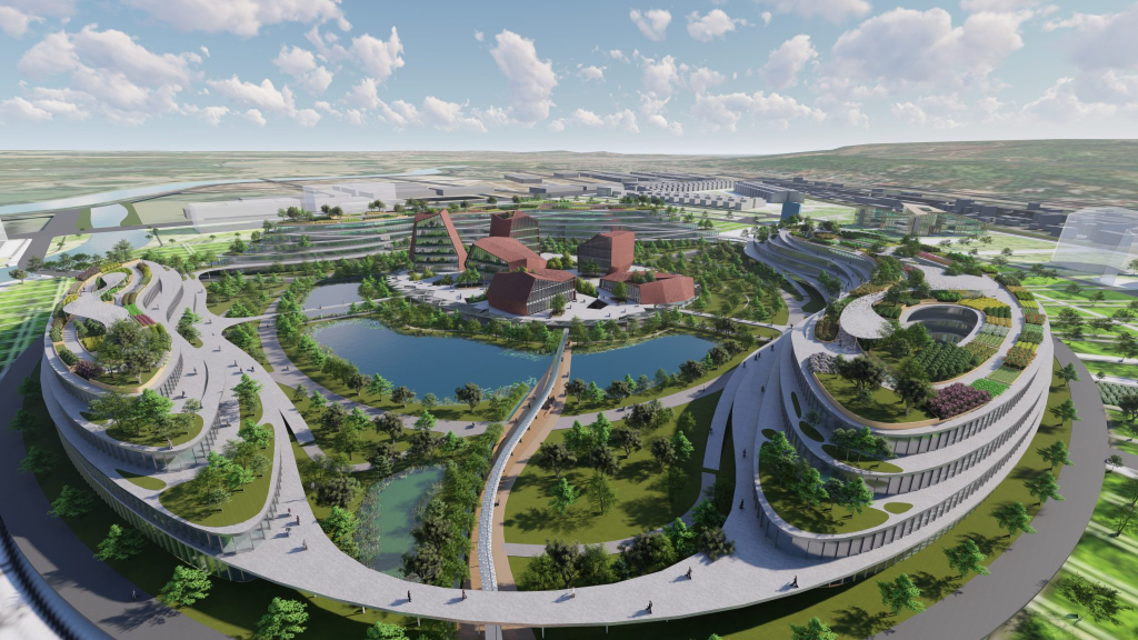 Quy hoạch hệ thống cây xanh, vườn hoa, đèn chiếu sáng, ghế nghỉ và đường dạo bộ – hướng đến không gian cộng đồng hiện đại.